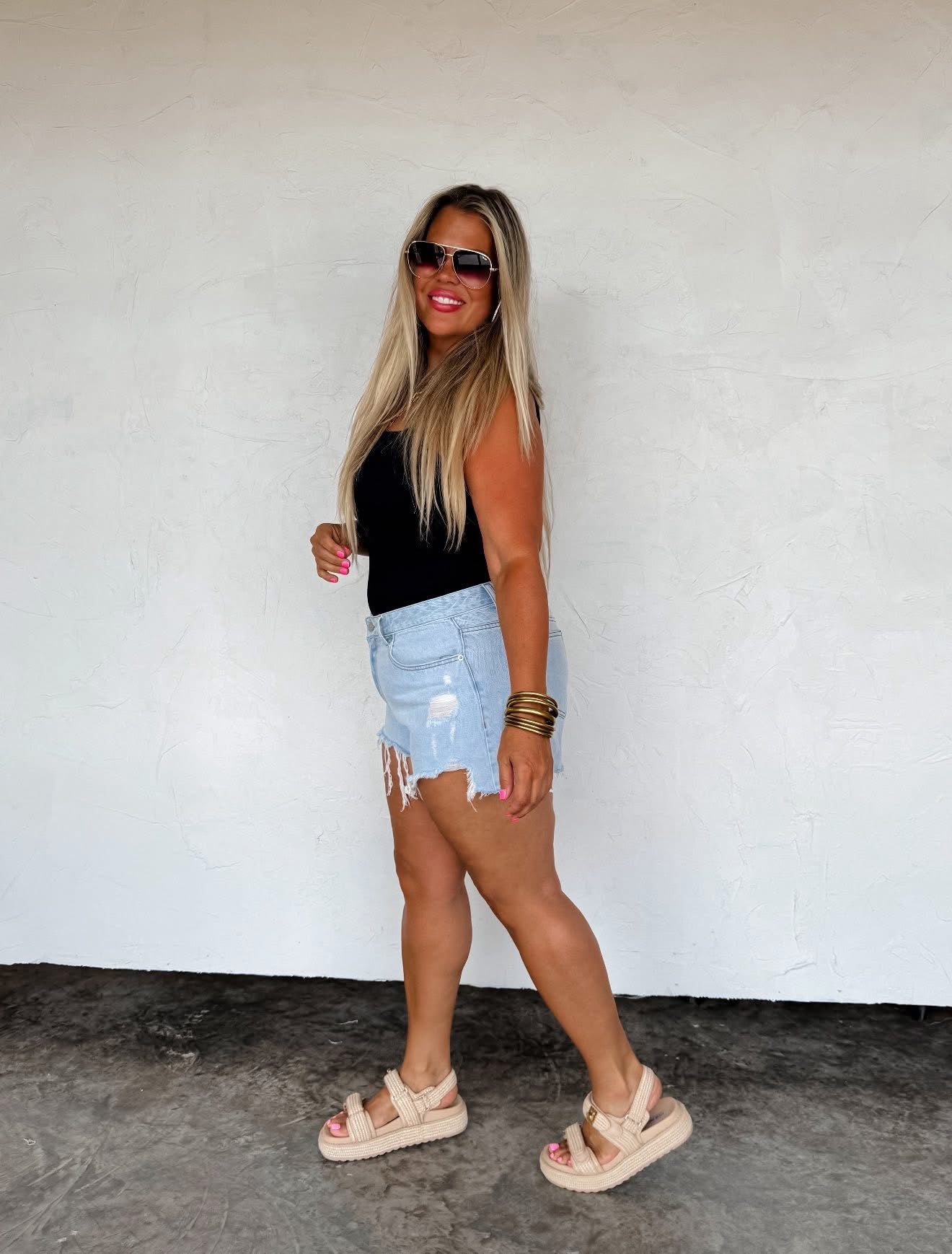 Crafted from high-quality denim, our Sunkissed Cutoff Shorts are the perfect addition to your warm weather wardrobe! Features slight stretch, frayed hem and some distressing, these casual boho shorts are perfection! For curvy girl (size 12/14+ size up if you want more room through hips/stomach or want the fit a little looser)!